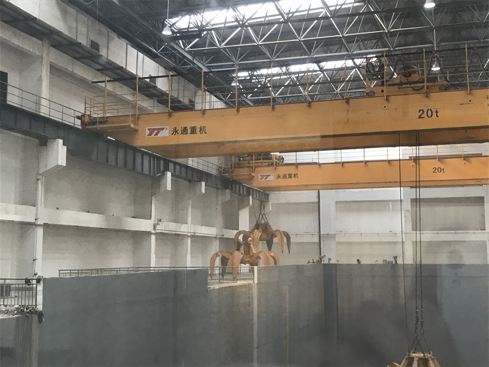 全自動垃圾吊簡稱:垃圾吊車)是城市生活垃圾焚燒發(fā)電廠垃圾供料系統(tǒng)的關鍵設備。垃圾吊車提供焚燒爐加料及對垃圾進行搬運、攪拌、倒垛,按順序堆放到預定區(qū)域,確保入爐垃圾組分均勻、燃燒穩(wěn)定。垃圾吊布置設計由垃圾抓斗、卷起裝置、行走裝置、配電裝置、稱重裝置以及控制設備等組成,其型式為橋式起重機,起重機抓斗為多瓣液壓抓斗。其設計使用條件為用于含塵空氣中重級制運行。它具有自動去皮、計量、預報警、超載保護的功能,并能在吊車控制室顯示統(tǒng)計記錄投料的各種參數(shù)。